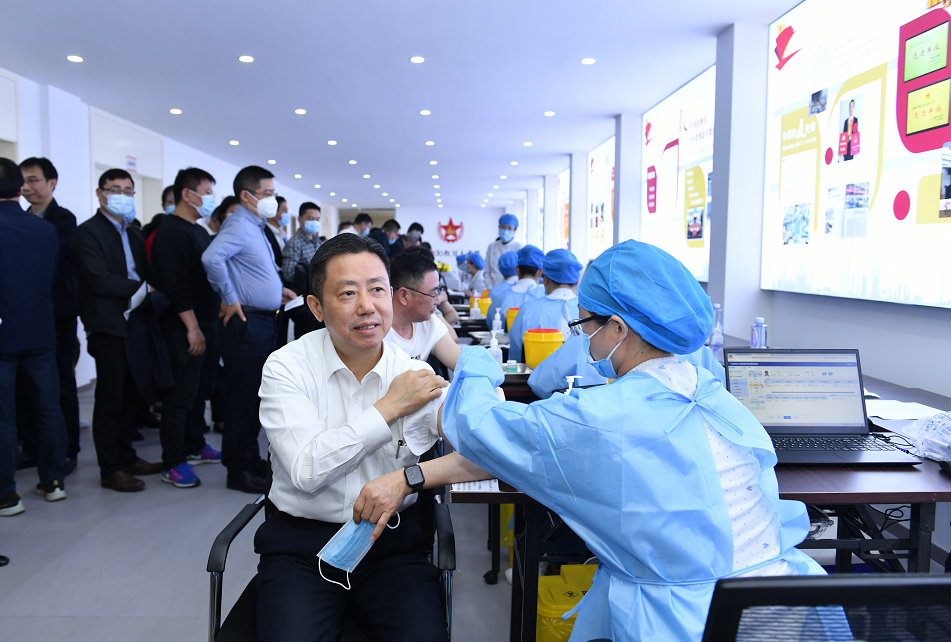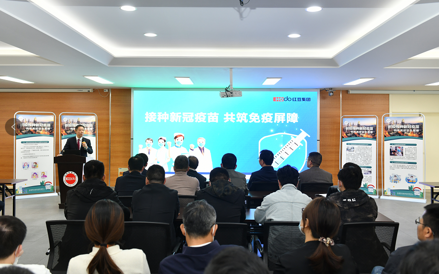 At 2 PM on March 30, Zhou Haijiang, the National Advanced individual in the fight against COVID-19 and chairman of the board of HOdo Group, mobilized for COVID-19 vaccination at the temporary vaccination site of University of HOdo and was the first to complete the vaccination; marking the official start of the Group's concentrated vaccination work. Jiandong Xu, the Xishan District Health Commission director, mobilized and explained the precautions for COVID-19 vaccination.